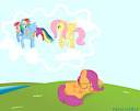 Sorry, didn't mean for that to come off so rant-like. My goal was to make the joke that if Rainbow Dash had gotten there a few seconds earlier Scootaloo would have forgotten to hit the ground. I don't make words very well after a 12 hour shift.
