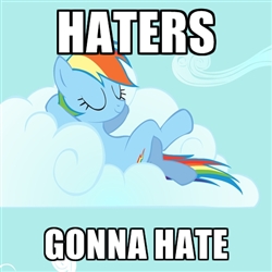 For my first review as a part of the WRITE group, I can say this fanfiction is actually quite good. It's a well thought out piece, not to mention something I've never seen before—and it's portrayed greatly. I honestly think what made it was having Rainbow Dash as the main character, because for the most part I can see her acting like this. A really good job, if I do say so myself. I do not know the requirements of Equestria Daily, nor do I think my opinion will make this certain (hardly do I ever even so much as touch that site), but honestly, they can be very picky, so some of the problems I mentioned above could very much make the difference between making it or not. However, I find it to be find quality, so trying it out over there cannot hurt. It's humorous, the flow goes well in my mind, and it's something many bronies can relate to. The grammar, overall, is not perfect, but it is strong. Look it over one more time and take notice of the mistakes I pointed out to make sure.