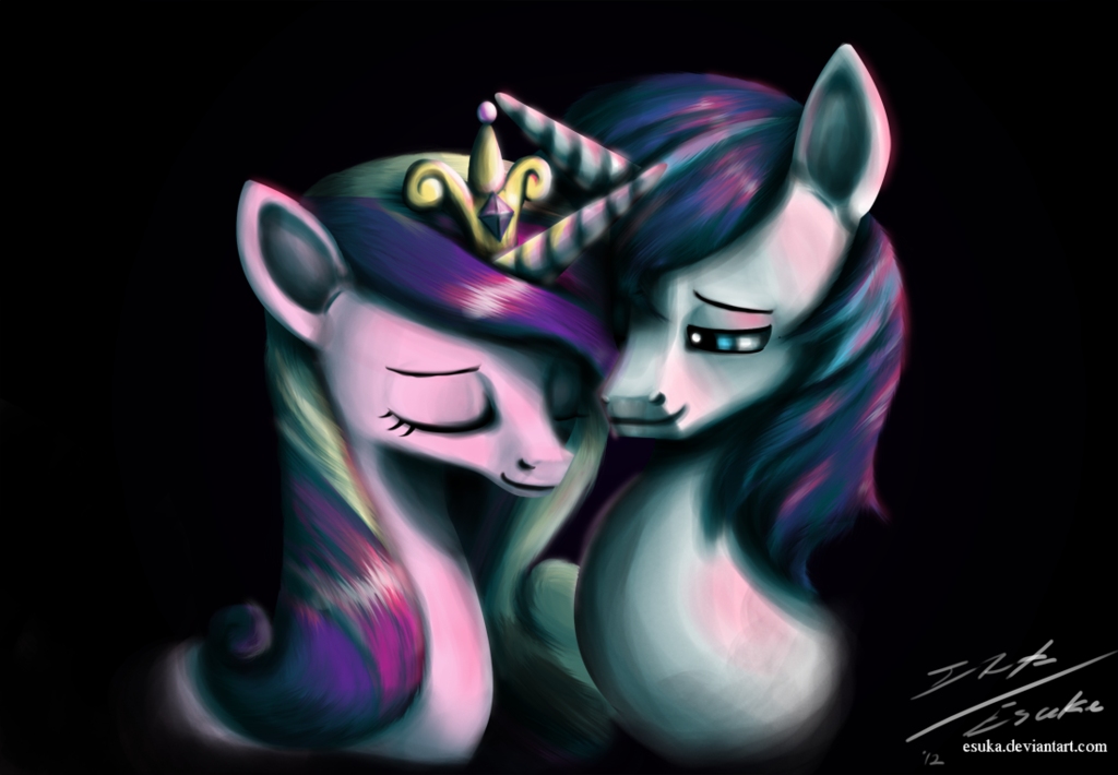 Hmm, quite the tragedy Indeed I have to say, and ironic too if one thinks about it. At first Shining Armor is faced with a dilemma where he questions his absolute love for his wife as he feel hollow inside, where as Cadence's love is absolute. Now, it seems that Cadence is faced with the same dilemma that his lover was placed in, even with the enchanted Shining Armor's absolute love (much to Cadence dismay) is not enough to comfort her. Makes me wonder how terrible Shining Armor ordeal was before he made his wife enchanted him. Maybe this goes this goes with a saying (there is quote for this I think, but I forgot so bear with me here) that time apart strengthens the love, as love do get stale to a prolonged exposure as do friendship.