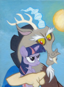 Also, I feel so bad for Discord. I can sense that he really does want to fit in, but his nature just won't allow it. You have made a despicable villain an empathetic character. A mustache for you, good sir!