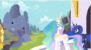 '. I guess she can't have changed much over the day-or-so between her defeat and leaving Ponyville again, but if she tried to say anything else, she'd have had the chance to find out just what Nightmare Moon had been doing on the moon the previous thousand years.